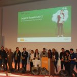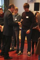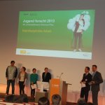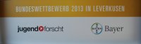 Und dann wurde es für alle Beteiligten spannend: Am Samstagabend wurden beim Abendessen im exklusiven Ambiente des Kasino Leverkusen der Bayer AG die Sonderpreise verliehen. Frederik durfte sich gleich als erster Jufo freuen, denn er bekam den Preis des Bundespatenunternehmens Bayer HealthCare überreicht!