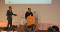 Prof. Dr. W. Plischke überreicht F. Dumele den Sonderpreis