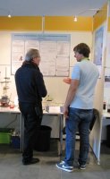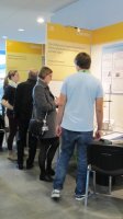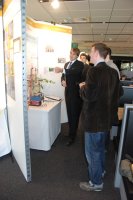 Den ganzen Freitag und am Samstagvormittag fanden die Gespräche mit den Fachgebietsjuroren statt, die die 5 Plätze in den jeweiligen Fachgebieten festlegen mussten. Eine bestimmt nicht ganz leichte Aufgabe, denn die Stände der Jungforscher machten alle einen sehr guten, professionellen Eindruck und die bearbeiteten Themen waren auf außerordentlich hohem Niveau. Im Fachgebiet Chemie war die Konkurrenz besonders groß, denn da gingen gleich 19 Projekte an den Start. Zusätzlich durften die Wettbewerbsteilnehmer ihre Arbeiten einigen Sonderjuroren präsentieren um eventuell einen der begehrten Sonderpreise zu ergattern.