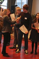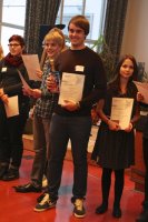 Frederik "musste" nämlich noch einmal auf die Bühne - erhielt nun zusätzlich auch noch den 1.Preis für die „Beste Interdisziplinäre Arbeit“ (250 €) und qualifizierte sich somit für den Bundeswettbewerb. Das war einfach großartig.