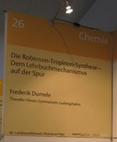 Frederik hat mit seiner Arbeit: "Die Robinson Tropinon-Synthese - Dem Lehrbuchmechanismus auf der Spur" den 2.Platz im Fachgebiet Chemie (200 €, Praktikumsplatz) erreicht!