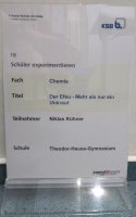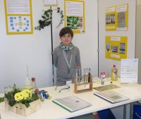 Niklas experimentierte mit Efeu und fand heraus, dass man mit Efeu gut Geschirr spülen kann. Seine Arbeit wurde mit einem Sonderpreis ausgezeichnet.
